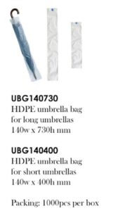 HDPE Umbrella Dispenser sleeves bag c/w 2 punched holes, sold separately for short and long sleeves